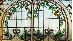 Combinación de colores de cristal emplomados formando dibujos. CONTACTO